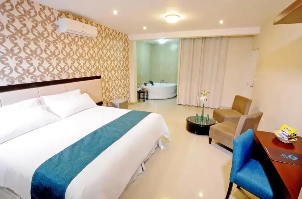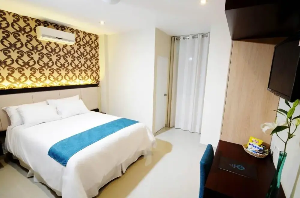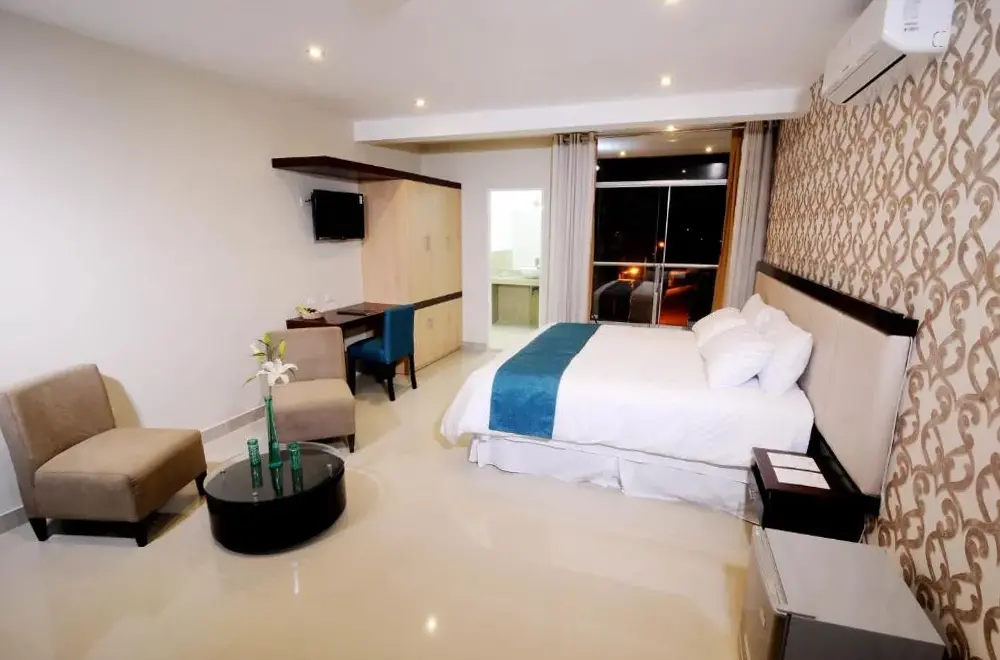 El Dom Hotel se encuentra situado en Calle Santa Maria 243 Mz G Lt 6 Urbanización Santa Isabel, Piura, Perú. Ofrece una variedad de servicios incluyendo WiFi gratuito, habitaciones familiares, habitaciones no fumadoras, servicio en la habitación e instalaciones adaptadas para invitados con discapacidad. El establecimiento cuenta con un buen desayuno que complementa su oferta. Los huéspedes pueden disfrutar de proximidad a varios puntos interesantes como Santa Cocina Night a solo 50 metros, Submarino también a 50 metros y La Olla Loca a igual distancia. Además, lugares cercanos incluyen San Felipe a 350 metros, Miguel Cortés a 1.3 kilómetros y Starbucks a 750 metros. Para viajeros que requieran traslados al aeropuerto, Talara Airport está ubicado a 95 kilómetros del hotel.